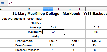 If you put that text into the now merged range of C1:S1, it will extract the Markbook Year from Cell “gv.C4” and “add” (or in programming terms, “concatenate“) it onto our “St. Mary MacKillop College – Markbook – Yr1” text.