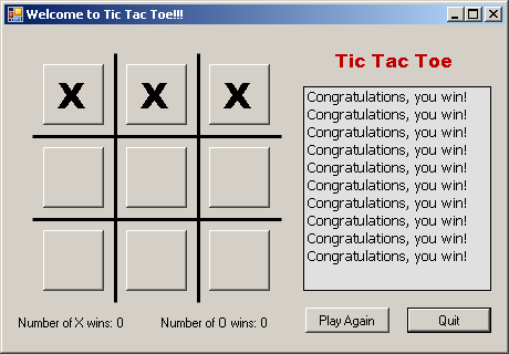 lblInstructions.Text = "Congratulations, you win!" counter = 1 While (counter < 10) lblInstructions.Text = lblInstructions.Text + vbNewLine + _ "Congratulations, you win!" counter = counter + 1 End While